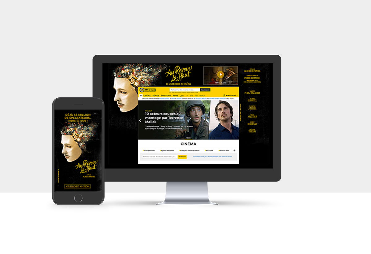 FR | 01 | Campagne allociné : webdesign et réalisation de bannières selon un budget défini en amont pour Au revoir là-haut, Le sens de la fête et Santa et Compagnie – 02 | Site internet à vocation pédagogique, réalisé pour les professeurs de collèges afin de mettre à disposition des informations sur le contexte historique du film Au revoir là-haut